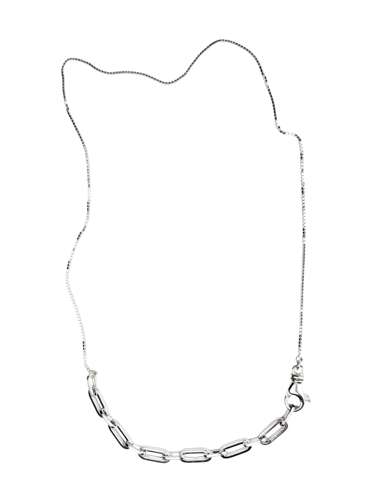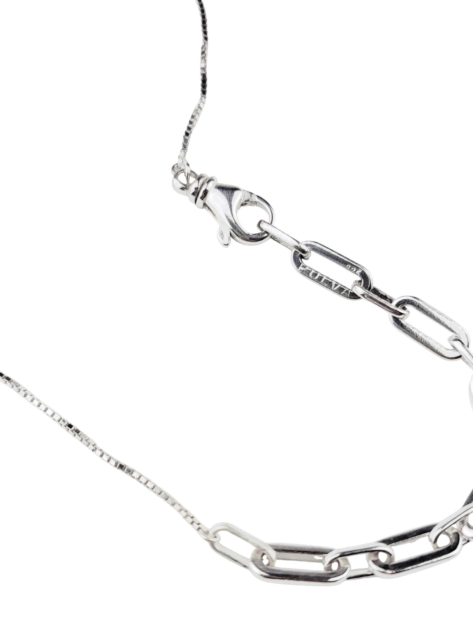 Mix of a bold and a delicate chain. Total length of the necklace is 55 cm.