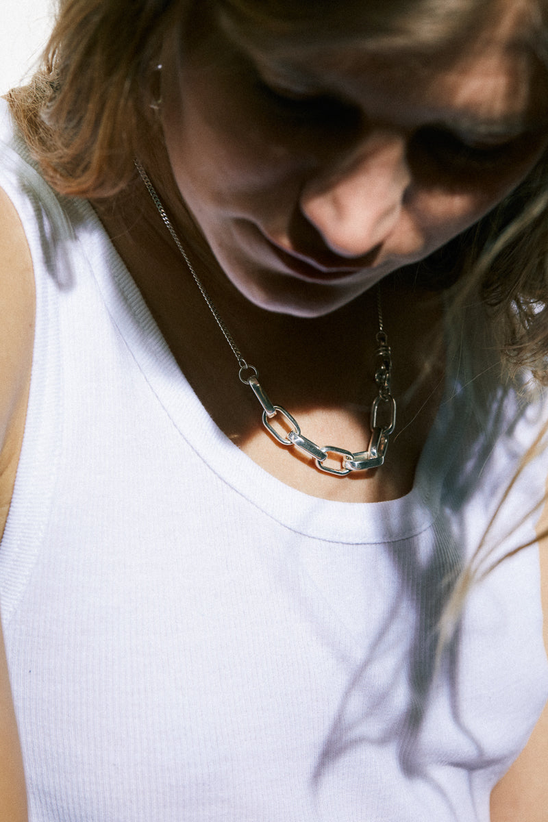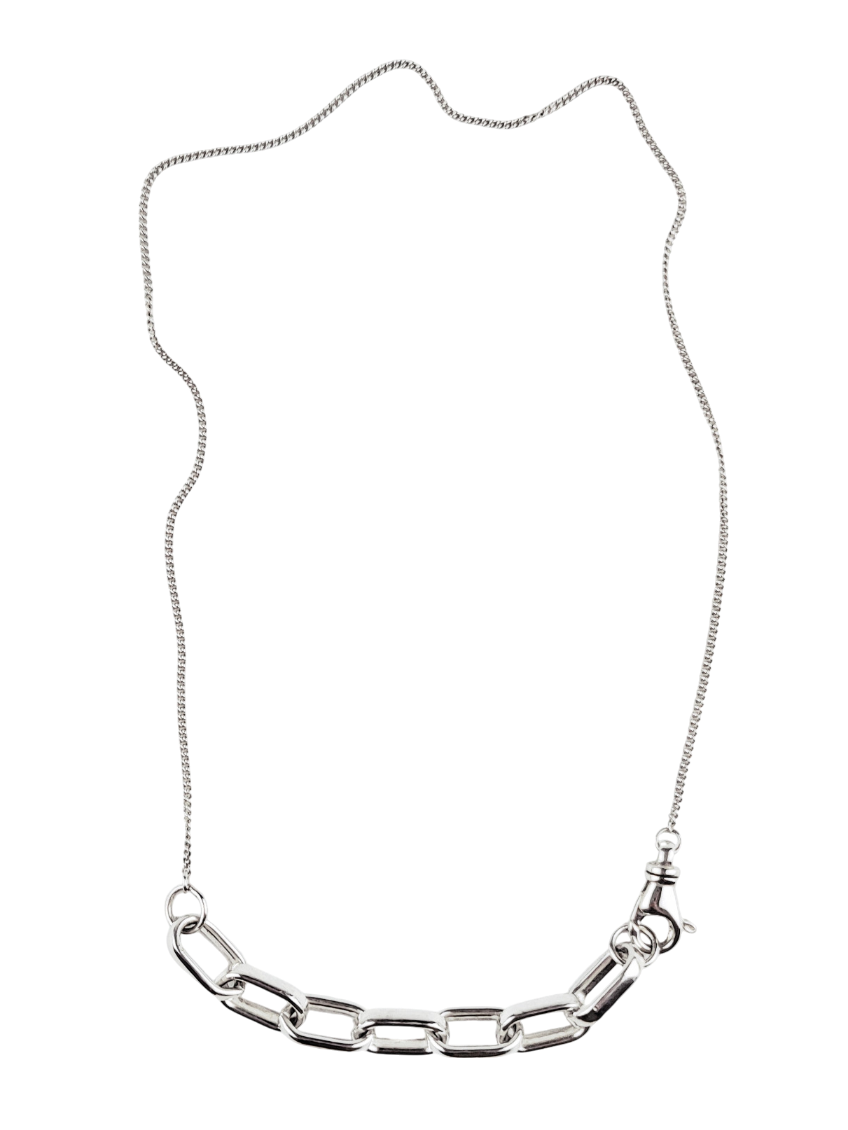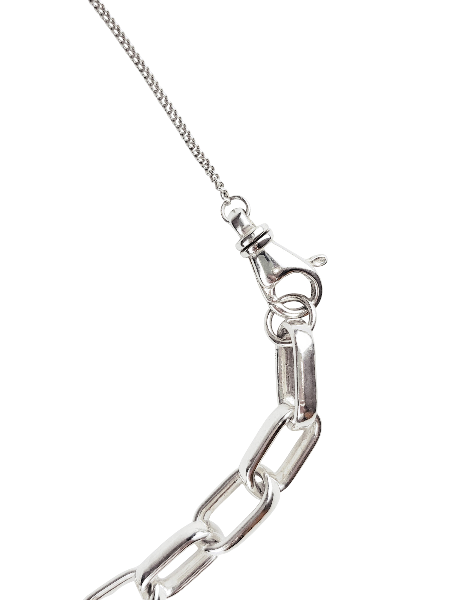 Mix of a bold and a delicate silver chain. Total length of the necklace is aprox. 45cm.